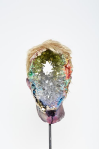 No materials are out of the realm of usability with Altmejd. In another series, with a sculpture of heads, the artist hacks away as much as he adds to these busts, often verging on the horror show, but never with actual gore. Horror is not the intention, but rather a visceral reaction to decapitated and mutilated forms. But here in Eye, what would be a rather nasty hole in a head, actually reveals a geodesic array of crystals, adding more to a face than what’s been taken away. In a celebratory way, we can imagine what creativity, personality and energy this figure holds. Whether they were a real person or not, he’s making a portrait of, or if, through the making of this sculpture he has awoken a new person. Titled Eye, but lacking eyes, or even a place to have them, this work sucks our attention into its cavernous void and stares back blindly, imbuing more power over us than a nasty look could ever do.