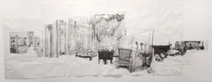 I’ve shown Dawn Clements’ work to students for years, and upon first sight someone will invariably ask me why she leaves so much paper “blank”. This is a perfectly reasonable question when one is used to looking at drawing in the usual ways, but Dawn Clements’ drawings are anything but…