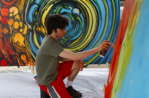 One River School offers over 70 summer camps, as well as additional studio and digital art classes throughout the summer months. Workshops were instructed by the school’s staff and they even had a Mr Mustart, a street artist from Jersey City who came out to do a demo work outside of the school. The artwork is now on view in the lobby! Maeve Collins, the school’s Assistant Director, explained it was an “interactive section for people to get involved.”