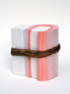 Tome, (Coral) cement brick, latex paint, twine and paper Image from pdxcontemporaryart.com