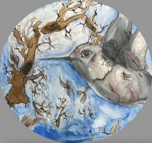I love how students were able to create drawings using common subject matter like animals, flora & fauna, and elevate them by creating a more meaningful narrative. The notes of symbolism in the relationships between the animals and other natural elements make each drawing much more interesting to observe and interpret. The project also allowed students to hone in on important drawing techniques using hatching and cross-hatching to create gradients and shadows.