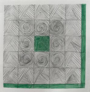 Overview: Students were introduced to James Siena, Sol LeWitt, and Alighiero Boetti as inspiration for creating a series of drawings that use rules and parameters to execute the creation of their artwork.