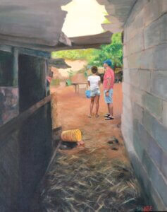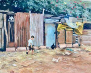 I am a realist commissioned artist, who specializes in portraits of all sorts, such as people, houses, places and pets in paintings, drawings and mixed media. Sometimes they are a traditional posed portrait, other times a special or everyday moment captured from life. My own artistic voice spans from mixed media character exploration of my alter ego, Ruby to painting from photos I’ve taken while traveling in my husbands homeland of Morocco, to moments in my life I feel I have to capture in a painting.