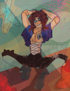 My favorite project probably has to be the Paper Doll project. It was designed by my current teacher and was used to teach about fabric folds and pleating. It was done through Photoshop and utilized the layer tool to be able to ‘dress’ the character we drew and make multiple outfits and props to make is feel as if we were dressing a modern punch-out paper doll. It was used to teach about fabric folding and pleating. I enjoyed it because we got to research and use real-world fashion to inspire the looks for our dolls, making them look as if they leaped from the runway onto the page. Since I have an interest in fashion and runways, but not necessary the whole scene it was a very fun way to live vicariously through another interest. All in all, it was a struggle at first to get the clothing and folding down, but it still kept my interest it managed to teach me something I am applying this day to the art I produce on the day-to-day, But even though we were learning such a crucial and complicated skill, the paper doll aspect brought it back to my interests enough to keep me going.