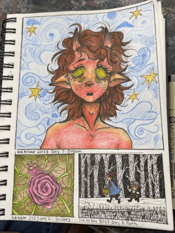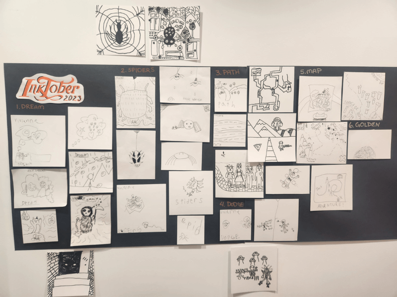 Inktober was a month long art challenge created by artist Jake Parker focused on improving skill and developing positive drawing habits. Every day throughout the month of October anyone participating in the Inktober challenge created an ink drawing and shared it online or at our One River Schools.