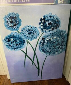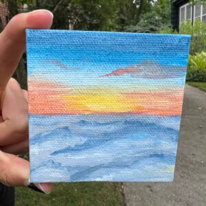 I started getting into art a little bit before COVID, but when the lockdown happened is when I really started getting into it and spending more time learning different materials and subject matter. I remember I used to paint on the floors in my bedroom and watch tutorials on how to paint and draw in different ways and spent any free time on practicing. I want to pursue art as a career and go to school for art.
