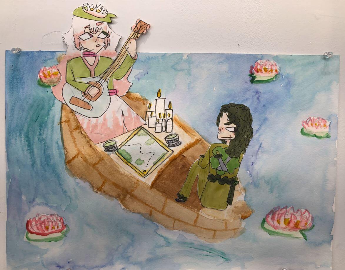 Overview: Students employ traditional painting techniques such as underpainting and glazing to create an artwork inspired by the manga artist Rolua. Students explore methods for creating dynamic poses and immersive worlds to combine cartoon-like style with realistic elements for one breathtaking painting.