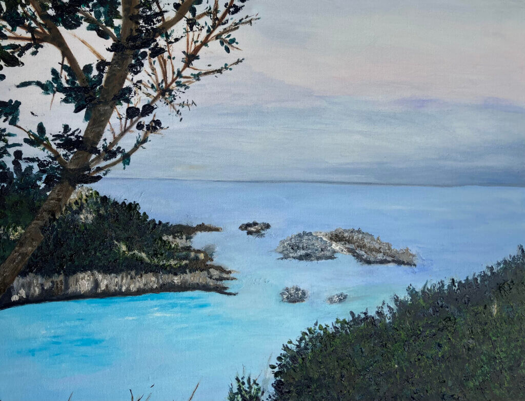 I learned about oils when I was in high school, and that’s when I started painting on my own. Then I started taking classes with a professional artist through the 70s. Then life happened and I stopped painting for myself, but I advocated for art for children in the state. Arts advocacy became my passion, and I was lucky enough that I was recognized as a spokesperson in the state for arts advocacy. It wasn’t until my mom passed I decided I needed to take care of myself and make my art again. And I was looking around and discovered One River, and it fit my needs.