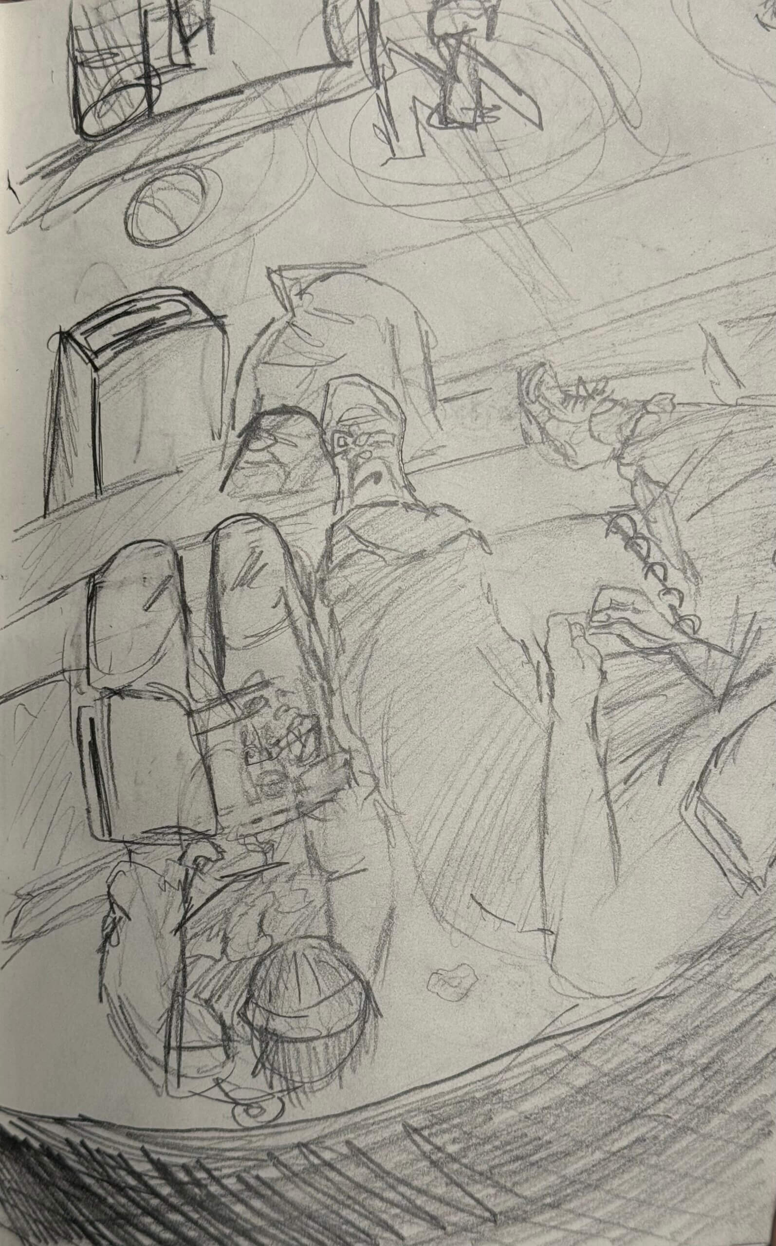 I really like the project I am working on in my Manga class. It is the total opposite of everything I do in my own art. We are using wide frame landscapes, black and white inking, and perspective. It’s all things I never put into my own art. I usually like using lots of color and female original characters. Now I am drawing guys, I never draw guys! I like it because I am learning new things and it is a good creative challenge.