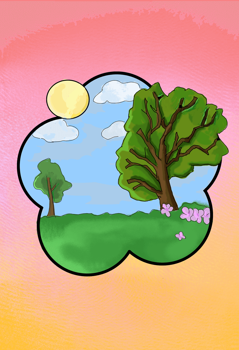Overview: Students create a Minimal, Textured, and Colorful vector-based landscape framed within a simple basic shape, with elements which break the framing.
