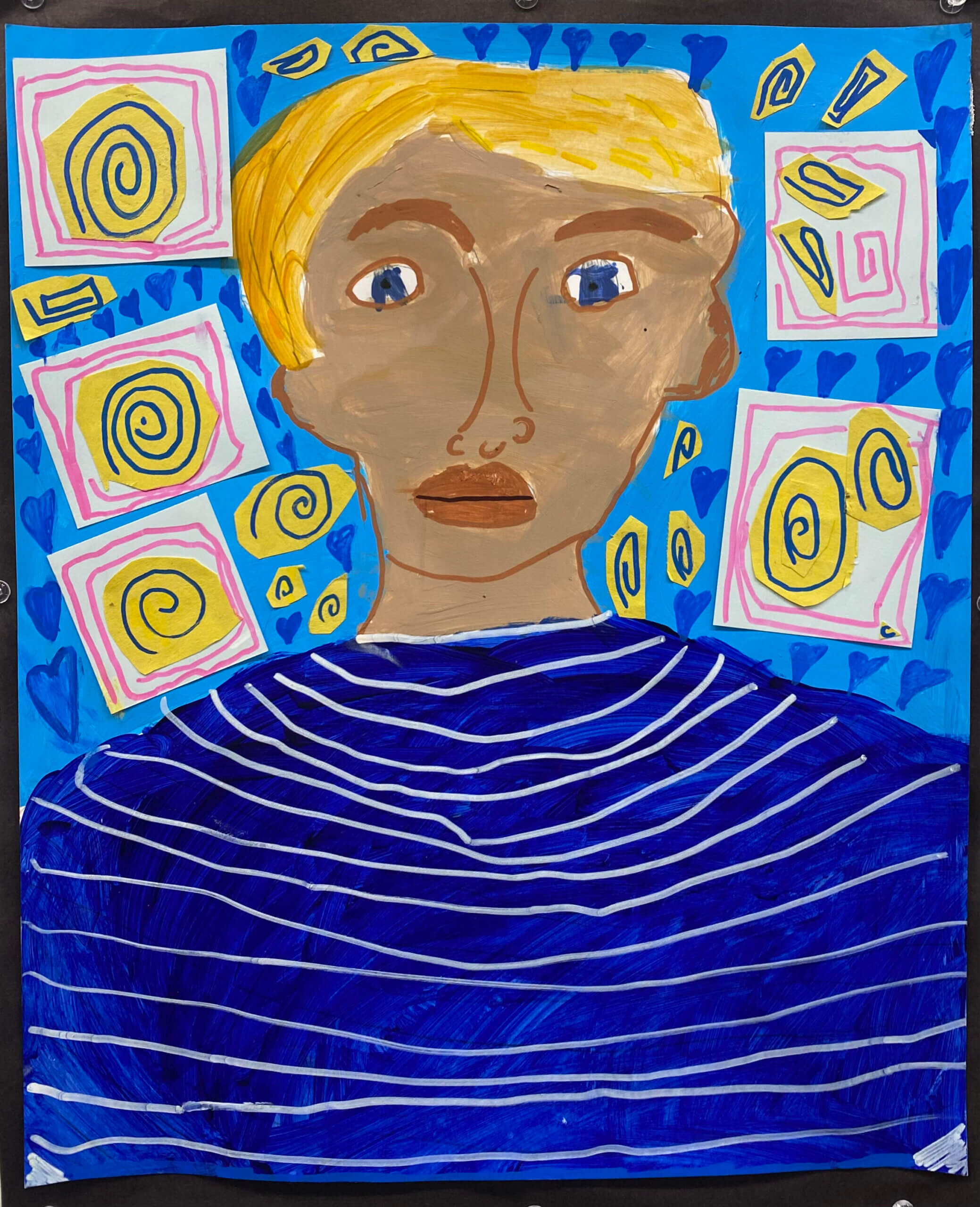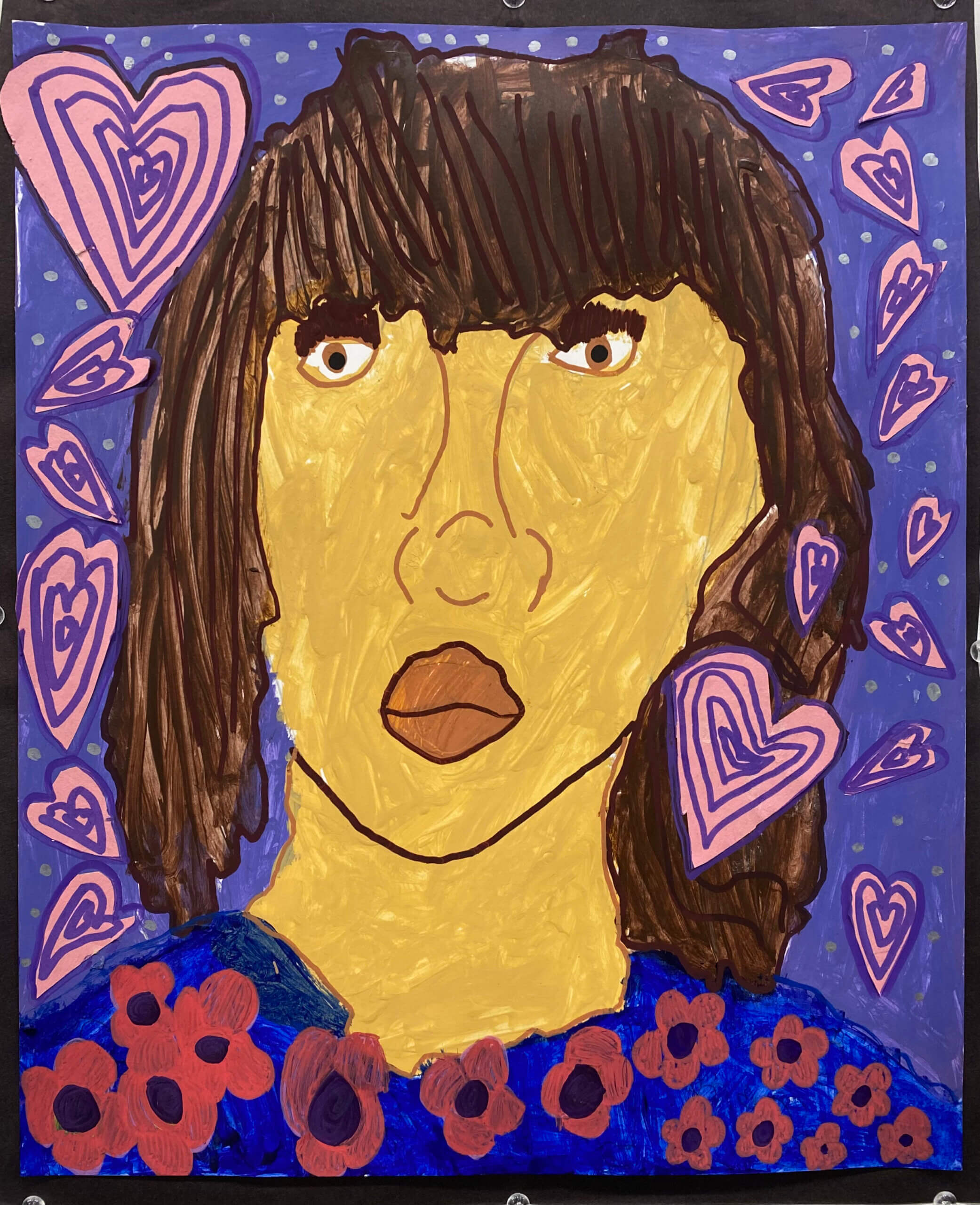 Overview: Studying the works of Mickalene Thomas, students create a self-portrait using techniques such as collage and pattern. To begin, students brainstorm and sketch a series of patterns. They translate their pattern or print onto canvas. The final outcome involves a vibrant self portrait with particular attention to background to convey the students own conception of the self.