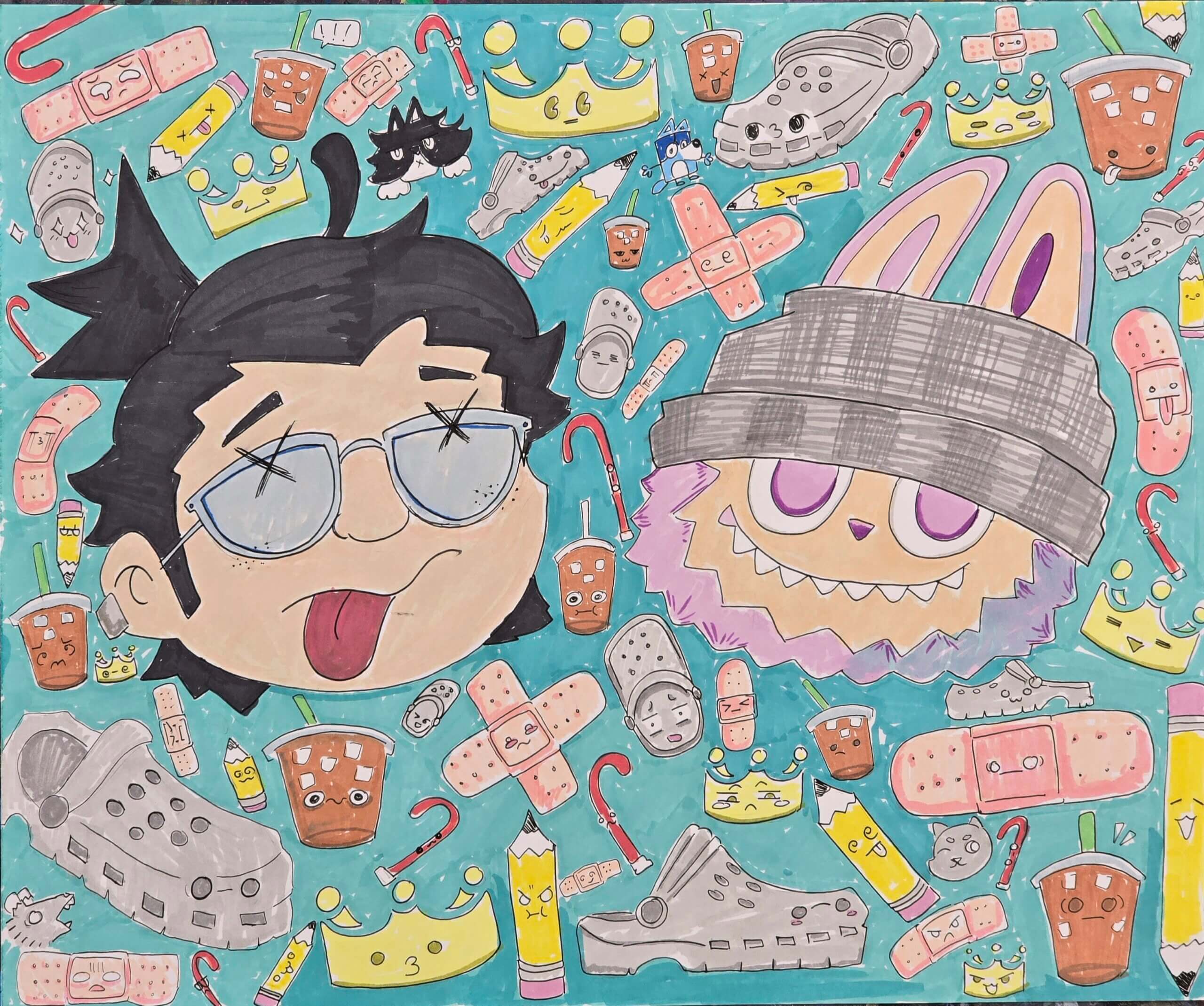 Well My name is Irene, I joke with others that the best way to remember it is to think of the hurricane. I have been making art since I could hold a crayon. I started off with mainly cartooning and drawing. Once I discovered anime that changed everything concerning my style and subject matter. My artwork is heavily influenced by my main loves- Japanese culture, Crocs, Cats and Labubus.