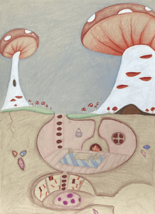 Art Focus®: Drawing: Teens Subterranean Dwellings Overview: Colored pencils present many opportunities for creative expression, story telling, and personalized details. Using colored pencils, students create subterranean burrows with connecting tunnels to tell a story of an imaginative underground scene. Vocabulary: colored pencils, layering, subterranean, and tonal paper Featured artist: Sarah…