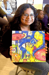 This past Saturday, I popped into our school in Englewood, NJ to participate in a first-time event for us: we participated in a virtual presentation from an artist based in California to over 40 students and it was amazing. Liv Aanrud, whose work is on display right now in the…
