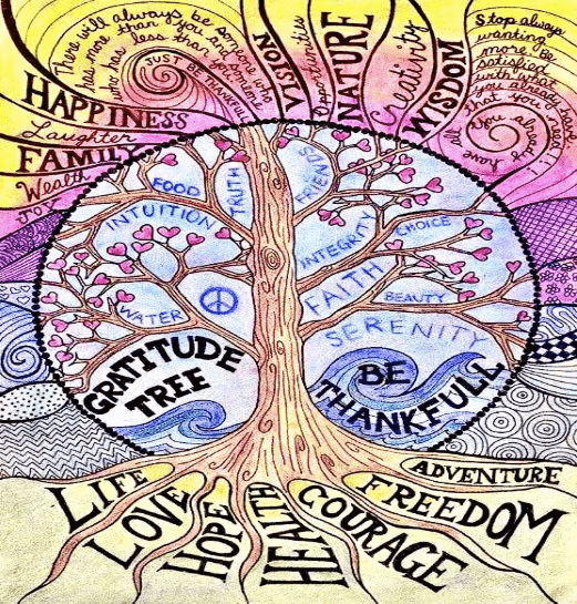 As we move through the holiday season towards the end of the year, I wanted to share an artwork / graphic that I stumbled on a few years ago that has resonated with me. It’s called “The Gratitude Tree” and if you take a minute and really stare at this image, you might also connect…