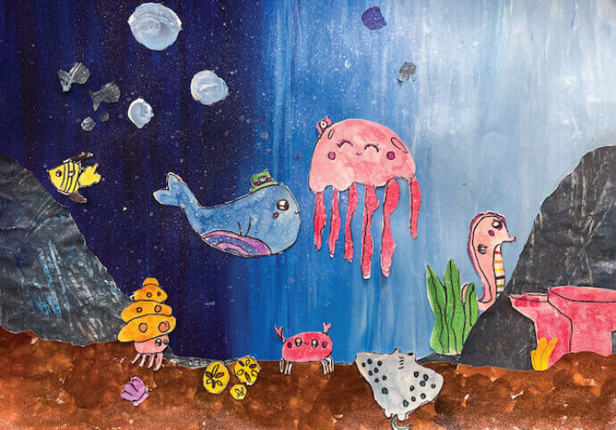 Grades 1-5 | Explore underwater creatures from the familiar sea turtle to the exotic vampire squid. Students will learn a variety of watercolor painting techniques as they create unique underwater scenes!